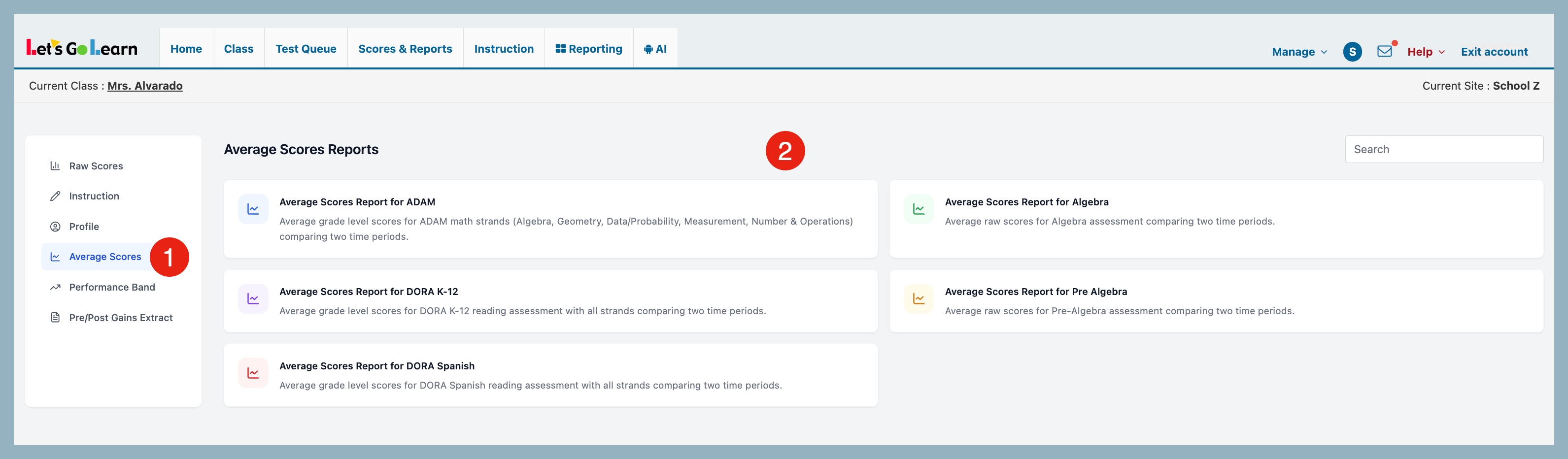 In the Data Portal, click on the Reports tab and select Average Scores.
