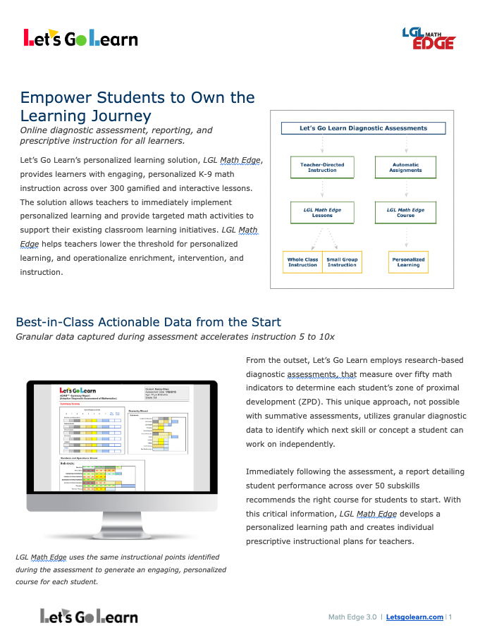 An overview of the value of personalized, data-driven math instruction with LGL Math Edge