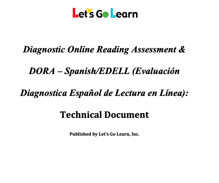 This 106 page document goes into great detail about each of specifications for DORA and DORA Spanish series, including the strands, subtests, correlation studies, and construct validity.